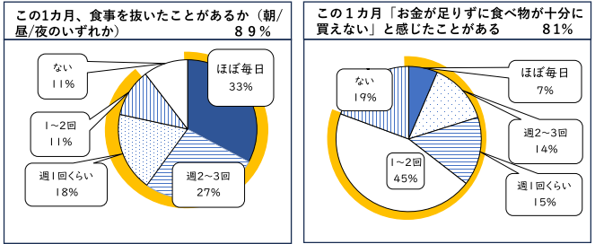 - 81%の学生が直近1カ月に「お金が足りず、十分な食べ物が足りなかった」と回答。