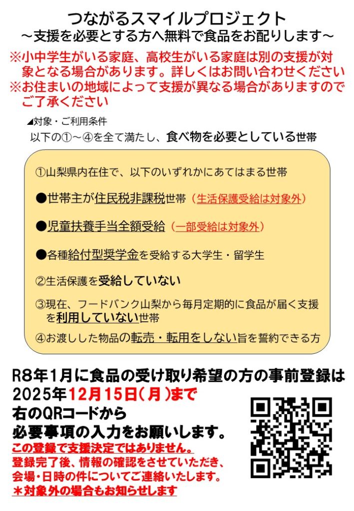 新着情報 > 2026年1月の食品配布◆第33回つながるスマイルプロジェクト◆